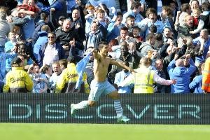这是英超历史上最具标志性的画面之一:阿圭罗在第94分钟打入制胜球,将冠军奖杯从死敌曼联手中夺走后,他脱掉球衣庆祝。