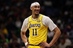 上半场比赛,湖人中锋海斯上场就充满活力,不仅能吃饼一球不丢,且还能倒地拼抢,他替补出战9分钟,4中4,罚球1中1拿到9分1篮板1抢断,正负值+5。