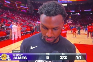 布朗尼中场期间接受了媒体采访,谈到自己父亲勒布朗,布朗尼表示:“他的伟大,已经无可多求,你知道,他给了我们所能要求的一切,他在防守端和进攻端都是球队的动力源泉。”