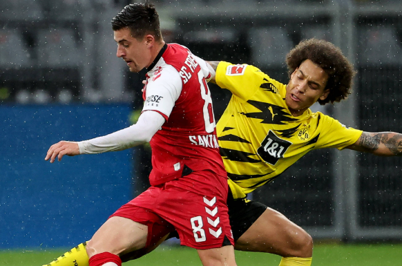 易边再战,多特蒙德攻势不减。第62分钟,桑乔接贝林厄姆传球,在禁区外轰出一脚无解世界波,皮球直挂死角,完成个人本场比赛的梅开二度,比分来到3-0。第78分钟,替补登场的穆科科接边路传中头球破门,将最终比分锁定为4-0。弗赖堡全场被动,进攻端毫无建树,仅有3次射门且0次射正,防线被多特彻底击穿。