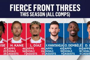 CBS Sports列出了两队锋线球员本赛季的数据统计,拜仁三叉戟在数据上堪称炸裂,但巴黎三叉戟在本场比赛的表现略胜一筹。