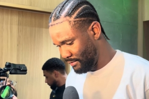艾顿:他们试图让我参与很多挡拆战术,让我的脚动起来,把我拉离篮下,这样我就抢不到篮板,但是,你知道,我对所有这些战术布置都做好了准备,我都见过,我尽力在换防后轮转回内线,特别是对谢泼德,我只是努力让自己成为内线的一股力量,把禁区搅乱,无论情况如何都要参与进来,无论是抢篮板还是干扰投篮。