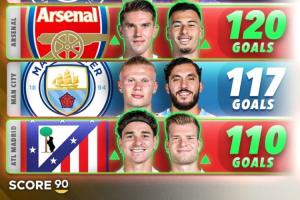 只会防守?阿森纳56场120球+马竞54场110球,均为五大联赛前6火力