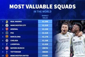 全球身价最高二十队: